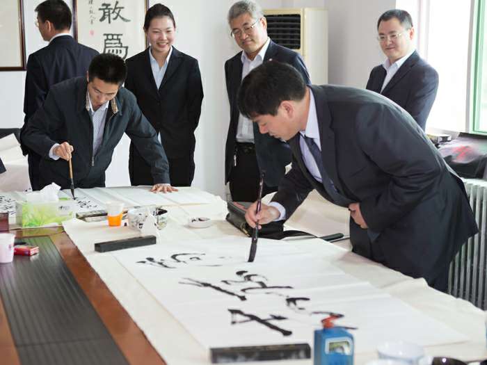 为弘扬传统文化,丰富员工业余生活,5月6日上午,乐鱼官方网站-乐鱼LeYu(中国)举办了首届书画艺术学习交流活动。本次活动邀请了中国书法家协会会员孟云飞博士、中国书法家协会理事张铜彦先生、中国书法家协会编辑出版委员会副主任王荣生教授、人民艺术家协会理事于瑛先生等国内知名书画大师,各位书画大师在活动现场进行了艺术创作表演,挥毫泼墨,交流技艺,为乐鱼官方网站-乐鱼LeYu(中国)留下了数十副墨宝,还对部分员工的书画作品进行了悉心指导。公司员工现场欣赏了书画大师的艺术创作,并聆听了有关书画艺术鉴赏知识的介绍,部分员工还在活动现场进行创作,听取书画大师的讲解示范和点评。