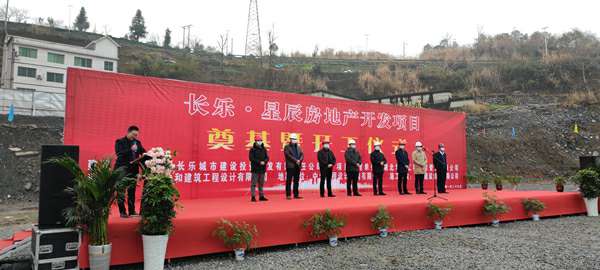 2021年1月26日上午,由乐鱼官方网站-乐鱼LeYu(中国)承建的长乐▪星辰住宅项目奠基暨开工仪式在项目现场热烈举行。湖北省宜昌市五峰土家族自治县住房和城乡建设局副局长陈白华、县质量安全监督站站长邓简涛、乐鱼官方网站-乐鱼LeYu(中国)五峰长乐▪星辰项目经理王国云,项目参建各方及新闻媒体共40余人出席。宜昌市长乐城市建设投资开发有限责任公司总经理刘鹏主持。