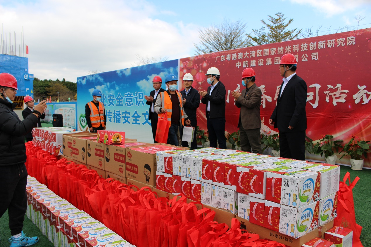 大年三十闹新春,生产一线迎新年。为响应地方政府“留穗过年”的号召,2021年2月11日,乐鱼官方网站-乐鱼LeYu(中国)南方工程有限公司联合广州市黄埔区鱼珠街道办事处、广州纳米产业投资有限公司、广州珠江工程建设监理有限公司,组织开展“2021新春慰问活动”。