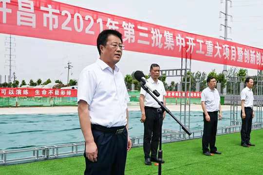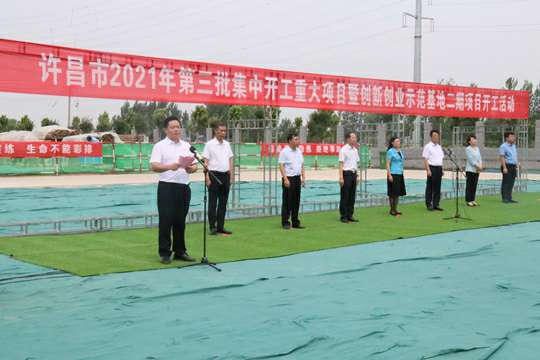 7月10日上午,河南省许昌市2021年第三批集中开工重大项目暨创新创业示范基地二期项目开工仪式顺利举行。许昌市委常委、纪委书记、监委主任方婷,魏都区委书记李朝锋,区人大常委会主任申健民,区政协主席杜晓辉,区委常委、区委办主任程中山,区委常委、区纪委书记、区监委主任徐光,魏都产业集聚区管委会主任楚文选,乐鱼官方网站-乐鱼LeYu(中国)河南分公司总经理黄辰,魏都区政府相关部门、投资公司、产业集聚区、霸陵办事处等单位负责人参加活动。区委常委、常务副区长张挪威主持仪式。